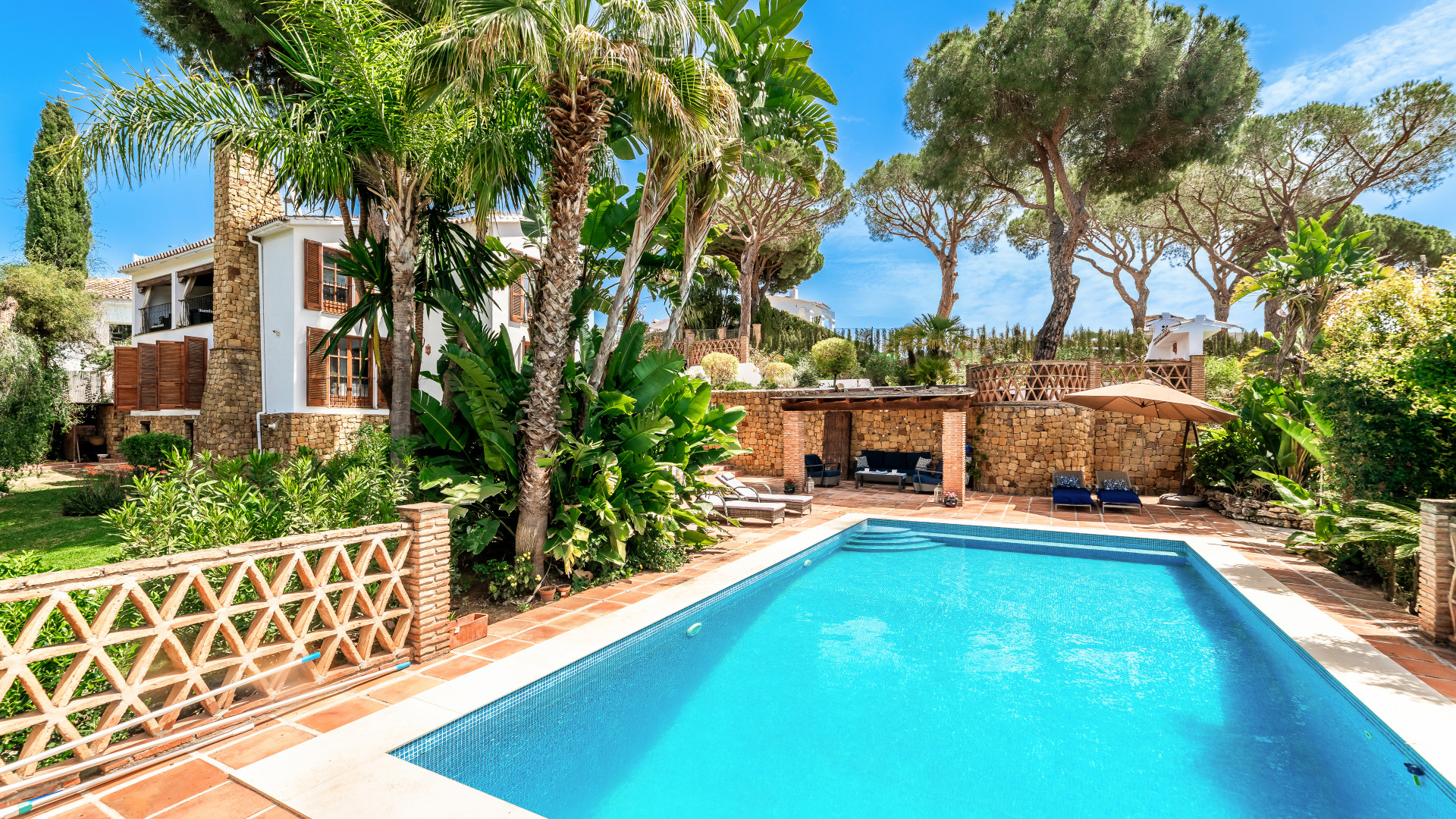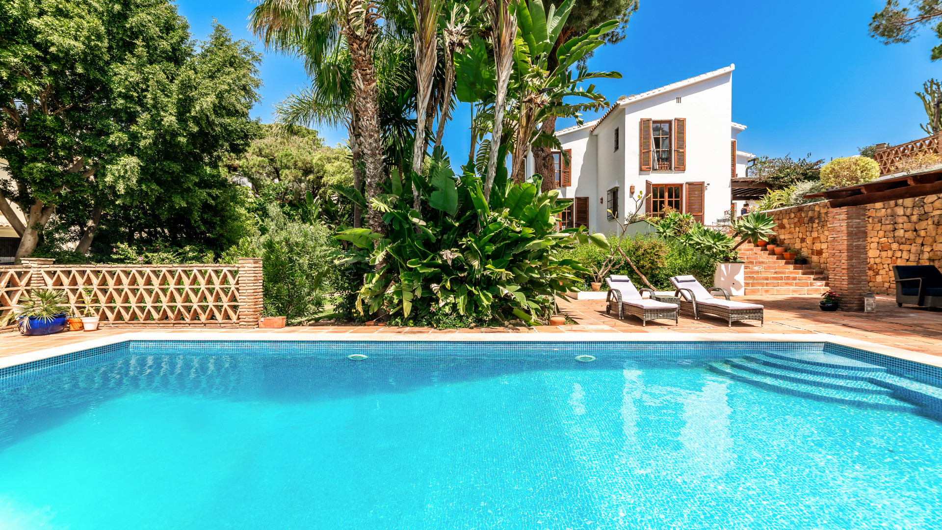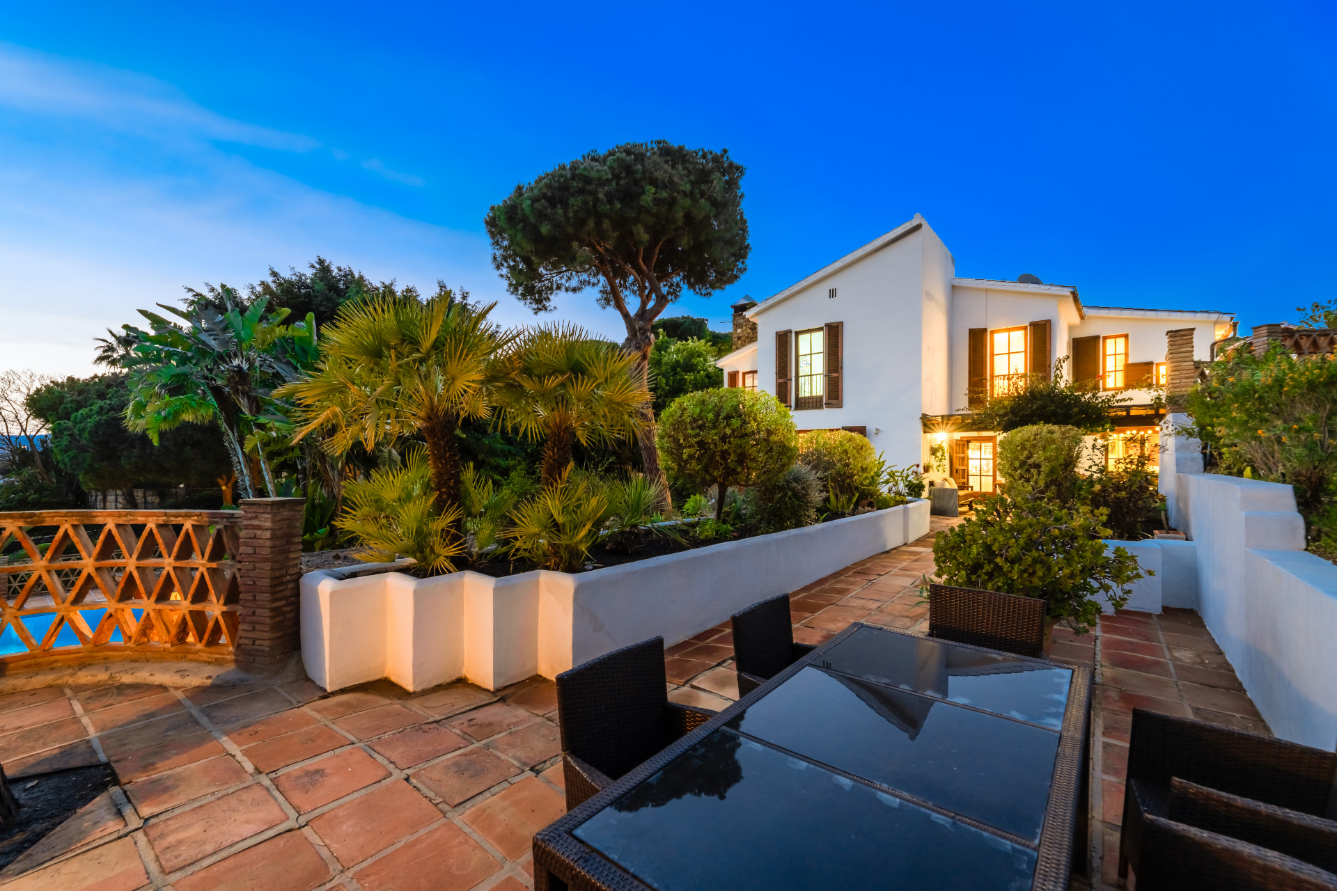 Eine außergewöhnliche Gelegenheit, eine prestigeträchtige traditionelle Villa in Elviria, Marbella East zu erwerben, eine der gefragtesten Orte an der Costa del Sol. Dieses südwestlich ausgerichtete Anwesen verfügt über eine erstklassige Position, die sowohl Ruhe als auch Privatsphäre bietet, in einem verdant 2,672m2 Grundstück, das wunderschön angelegt und sicher in einer gated Community ist. Die Villa liegt günstig nur wenige Fahrminuten vom Strand entfernt, in der Nähe von renommierten Golfplätzen und dem hoch angesehenen Restaurante El Lago und bietet einen einfachen Zugang zur Autobahn A7 und zum pulsierenden Stadtzentrum von Marbella.