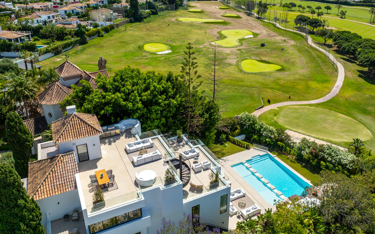 Una de sus joyas es la amplia terraza con comedor exterior y cocina equipada, ideal para eventos sociales bajo el cielo andaluz. Gracias a su orientación y arquitectura, la propiedad maximiza la entrada de luz natural y ofrece vistas despejadas al campo de golf y al mar. Esta villa representa el equilibrio ideal entre el encanto clásico y las comodidades de última generación.