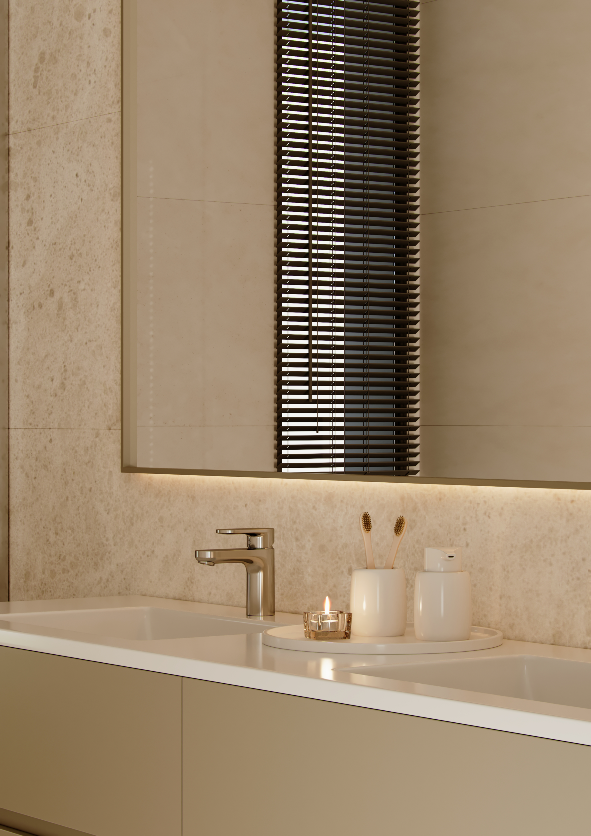 Los interiores de estas villas están diseñados con una atención meticulosa al detalle. Los pisos están adornados con grandes baldosas de porcelana en colores neutros, proporcionando una estética moderna y elegante. El sistema de calefacción cuenta con calefacción por suelo radiante en toda la casa, complementada con aire acondicionado independiente para cada espacio, garantizando comodidad en cada estación. El agua caliente doméstica se suministra a través de un sistema aerterémico eficiente.
