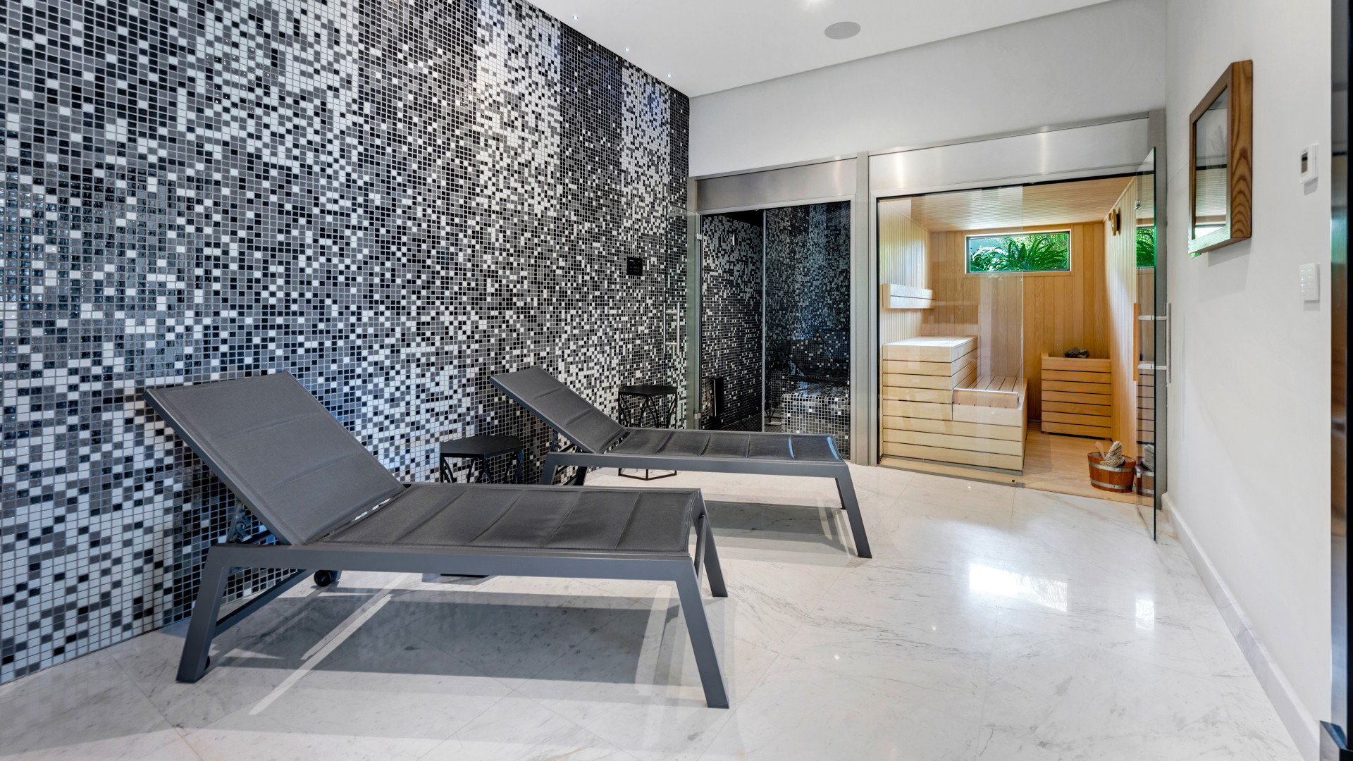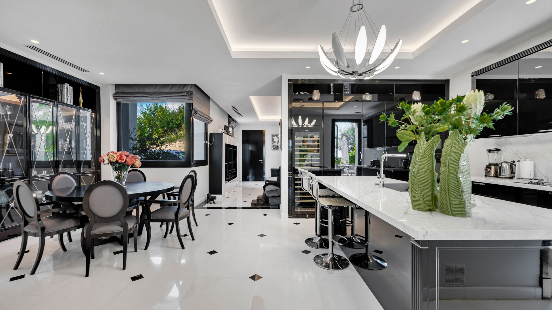 La propiedad cuenta con una cocina gourmet de planta abierta equipada con electrodomésticos de alta gama ideal para los entusiastas culinarios, mientras que la suite principal impresiona con su baño en suite y amplio walk-in closet. Entre los lugares más destacados se encuentran el alojamiento de invitados, una sala de oficinas y balcones que ofrecen montaña, jardín, piscina y vistas panorámicas. El gimnasio y el bienestar son el centro del atractivo de la villa, con un nivel inferior dedicado que alberga un gimnasio en casa, baño turco, sauna y bodega, además de una sala de entretenimiento y cine, una zona de juegos, y cómodas instalaciones de lavandería.
