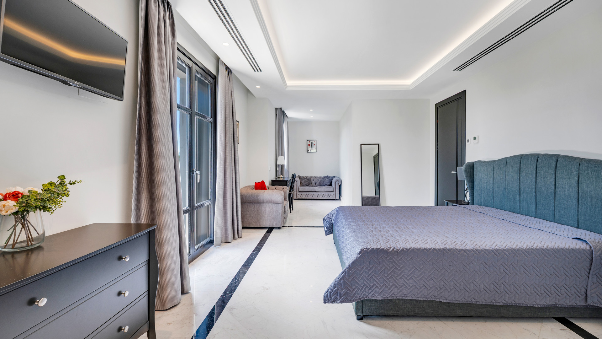 Pensadamente diseñada para fomentar un estilo de vida de elegancia y confort, la villa da la bienvenida con un gran hall de entrada de doble altura y techos amarrados, complementados con suelos de mármol lujuriosos por todas partes. La principal sala de estar y comedor se desarrolla en un elegante diseño semicircular, iluminado por puertas de vidrio de gran tamaño que conducen a una terraza privada. Los residentes pueden disfrutar de la amplia zona chill-out con tumbonas, o entretenerse en estilo en el gazebo con una cocina al aire libre y zona de barbacoa, ideal para cenar al aire libre con vistas a la prístina piscina privada y jardín ajardinado. La villa también se beneficia de aire acondicionado, chimenea, doble acristalamiento y servicio de seguridad durante todo el año confort y tranquilidad mental.