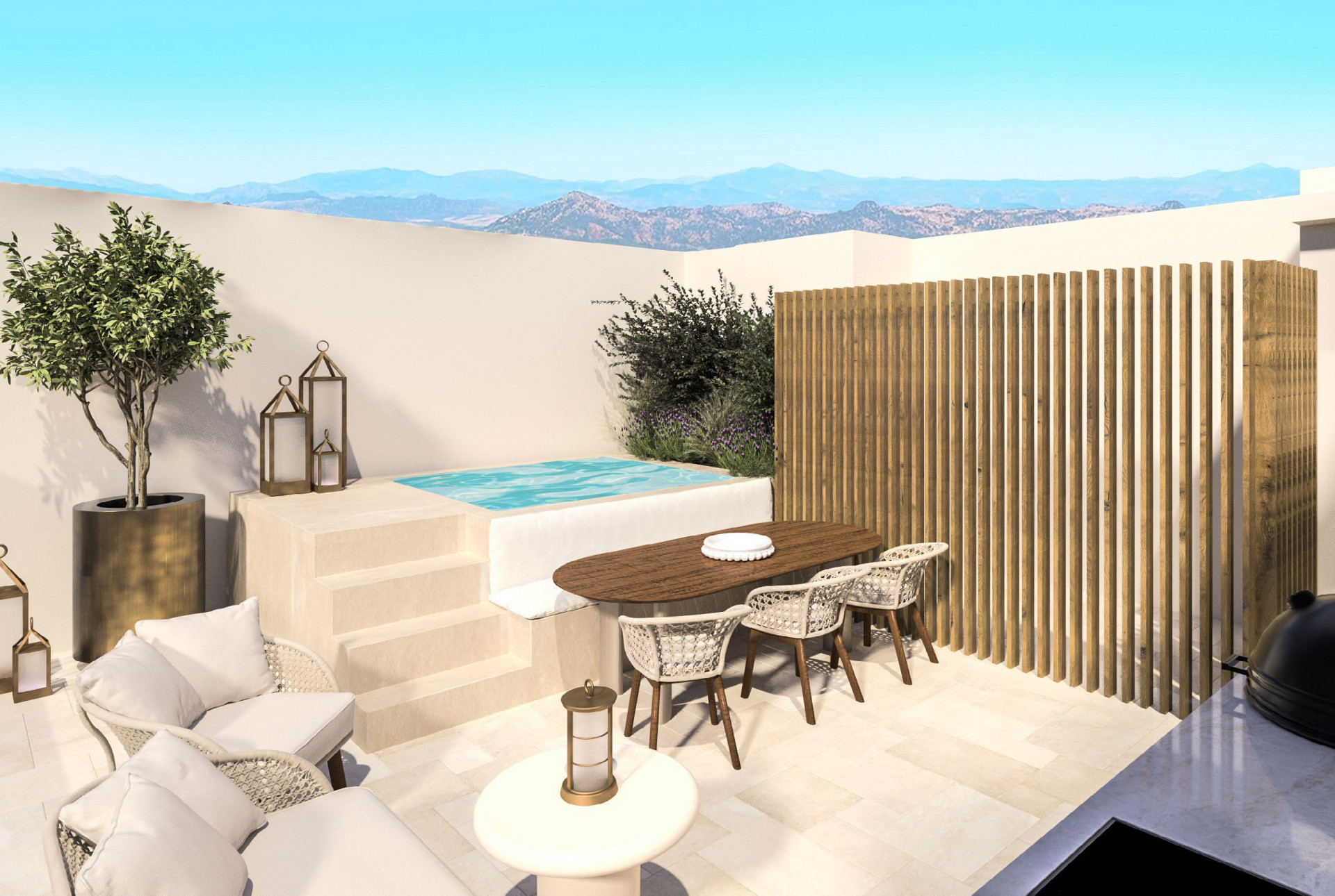 Buitenleven staat voorop, met 62m2 privé terrassen, een solarium en een aangelegde privétuin. Bewoners kunnen genieten van een panoramisch uitzicht op de bergen en het platteland, terwijl functies zoals het privé zwembad, barbecueruimte, overdekte en onbedekte terrassen, en een buitenkeuken naadloze binnen-outdoor entertainment. Voor het gemak en comfort biedt het huis een eigen garage en directe toegang tot een scala aan gemeenschappelijke voorzieningen, waaronder een gedeeld zwembad, padelbanen, een sociale club, Pilates gebied, co-working ruimtes, en een wellnesscentrum met spa, allemaal ondersteund door eigen restaurant en conciërge diensten.