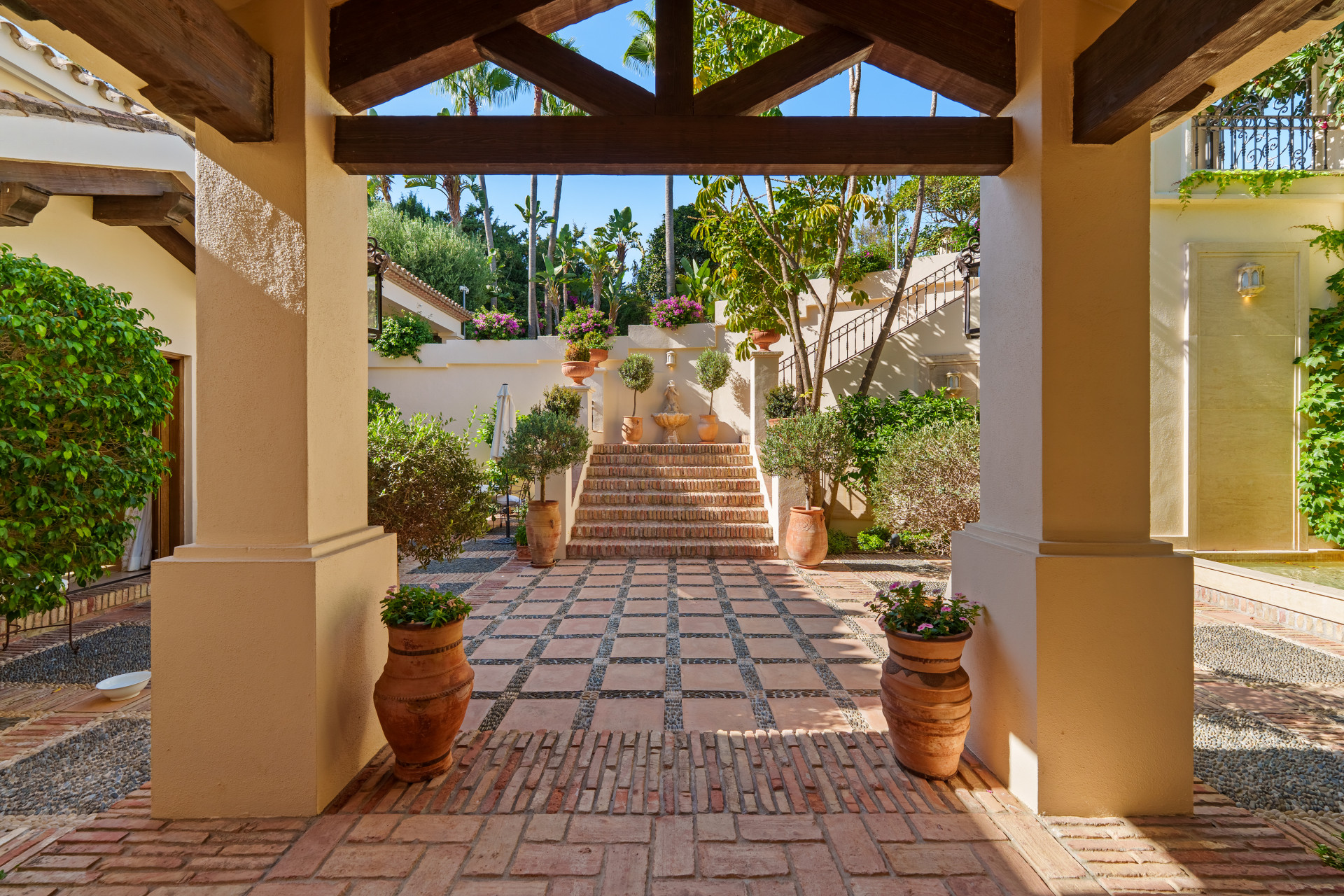 Buitenleven is even verleidelijk, met gemanicuurde tuinen, een eigen zwembad, overdekte en onbedekte terrassen, een speciale barbecue zone, en een buiten woonkamer met een panoramisch uitzicht over de zee, bergen en tuinen. De carport is geschikt voor maximaal vier voertuigen, en functies zoals automatische irrigatie, wasfaciliteiten, en de nabijheid van vrije tijd, winkels, scholen, en gezondheidsvoorzieningen onderstreept de villa mix van kwaliteit, privilege, en levensstijl die het leven op de Marbella Golden Mile definiëren.