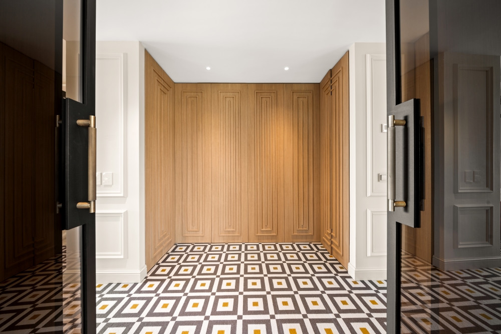 The master bedroom suite stands out with its walk-in closet and deluxe en-suite bathroom, including a jacuzzi for relaxation and wellness. Additional features such as a guest room, an office area, and a balcony enhance the property’s flexibility and appeal. The kitchen is fitted with opulent marble countertops and top-of-the-line Miele appliances, supporting an elevated culinary experience.