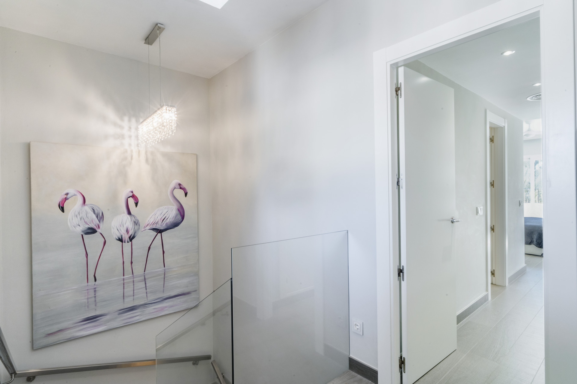Carefully selected features such as air conditioning, a modern fireplace, double glazing, aerothermic systems, and glass doors guarantee year-round comfort. Security and convenience are paramount, with 24-hour gated community surveillance, a private garage, lift access, and an advanced alarm system. The penthouse is in impeccable condition, further enhanced by its proximity to public transport, shops, playgrounds, and golf courses.