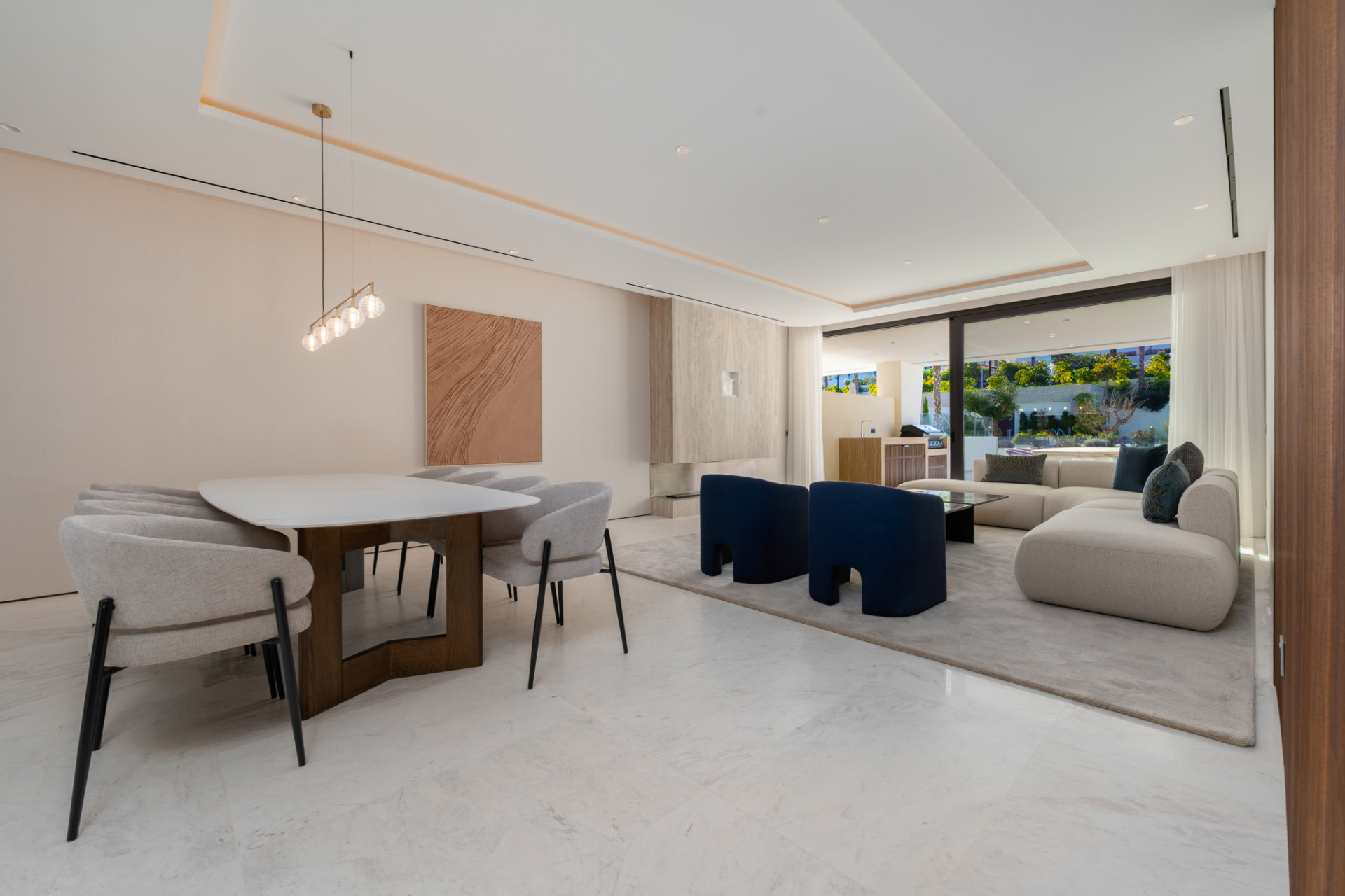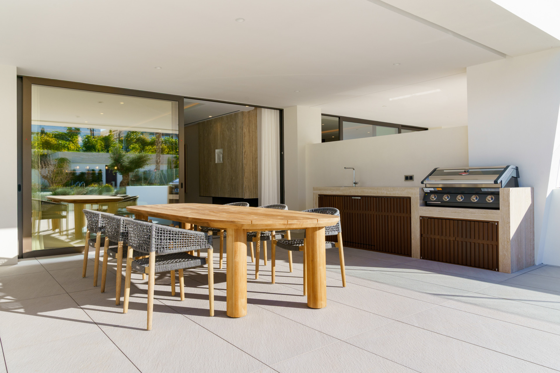 The living spaces are bright and airy, seamlessly connecting with the generous terrace designed for al fresco dining and entertaining, complete with a barbecue area, outdoor kitchen, and chill-out zone. Additional features, such as a fully furnished interior, fireplace, glass doors, Internet via fibre optic, laundry room, and ample storage, ensure effortless living. Resident convenience is further enhanced by direct access from the basement to the private garage and an internal lift connecting all levels.