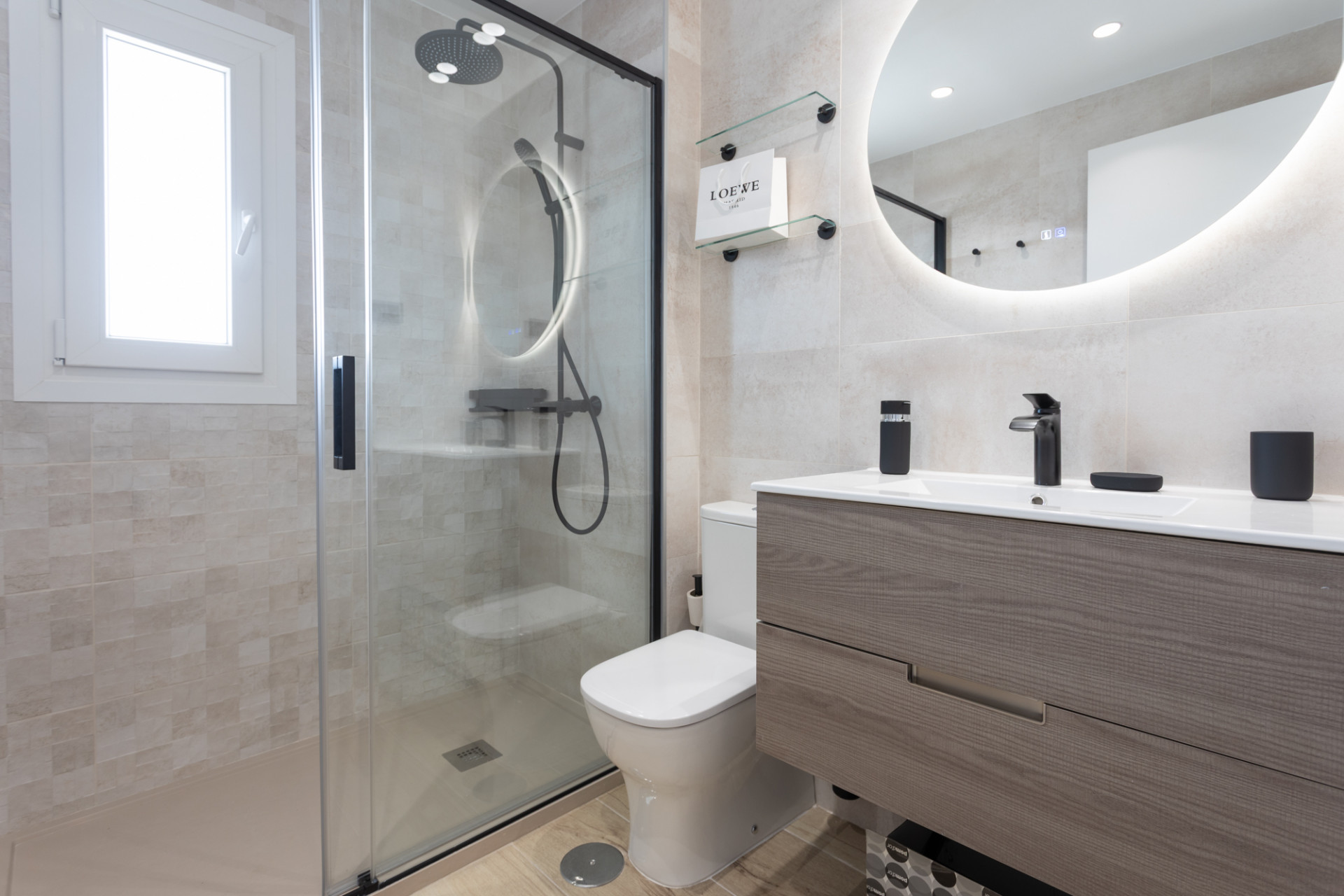 The open plan living and dining area is flooded with natural light, featuring double-glazed glass doors and immaculate finishes throughout. A sleek, fully fitted kitchen complements the main entertaining space, while a dedicated laundry room adds everyday practicality. The penthouse provides panoramic views capturing the majestic La Concha mountain, the cityscape, and partial sea vistas—best enjoyed from the expansive terrace, ideal for al fresco dining and relaxation. Optional stylish furnishings are available for convenience.