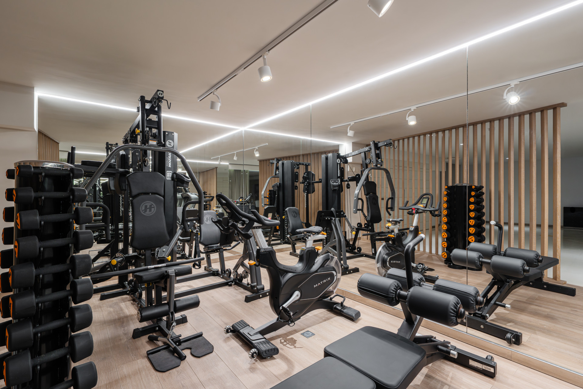 Contemporary open-plan living and dining areas flow naturally onto expansive, sun-drenched terraces, ideal for indoor-outdoor living. The fully equipped open plan kitchen, double glazing, underfloor heating, and air conditioning guarantee year-round comfort, while features such as the guest room, guest toilet, and storage room add to the practical appeal. Wellness and entertainment are at the heart of the lower level, where a dedicated area includes a sauna, gym, games room, cinema area, and a sophisticated wine cellar – all benefitting from the restful garden, pool, and panoramic sea views.