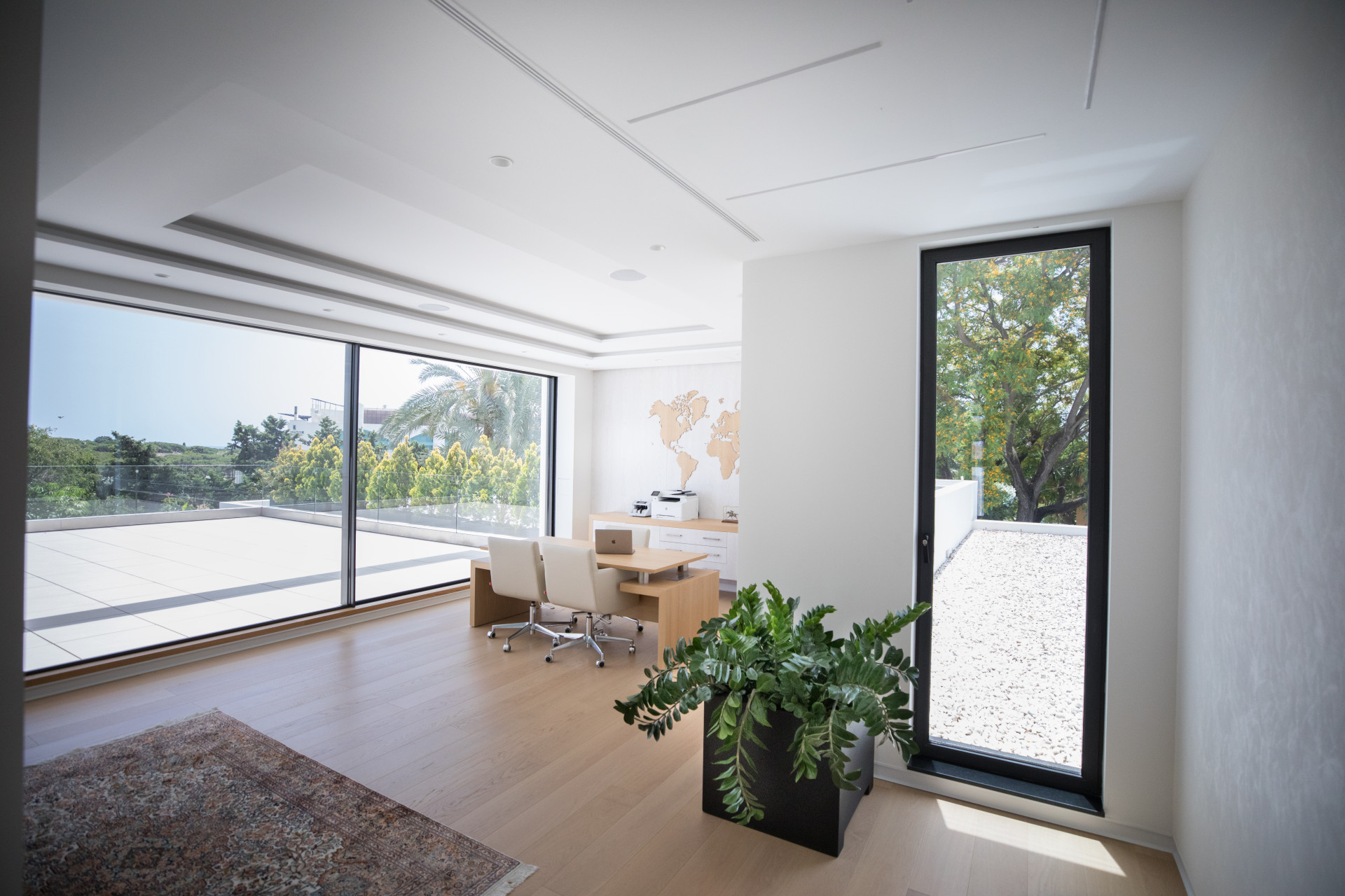 The property is set on a vast 3,397m² plot and maximises its impressive footprint with a built area of 1.497 m2. It houses seven bedrooms and five bathrooms, including a separate guest house of 500m² featuring two en suite bedrooms, a modern kitchen, and a refined living area—ideal for hosting and entertaining guests. The villa’s open-plan layout includes a fully fitted kitchen, a luminous living and dining area, a study, and an office room. Multiple terraces, including a generous 127m² of outdoor space, seamlessly connect the interior with the landscaped gardens, which treat residents to panoramic views of the sea, mountains, pool, and gardens.