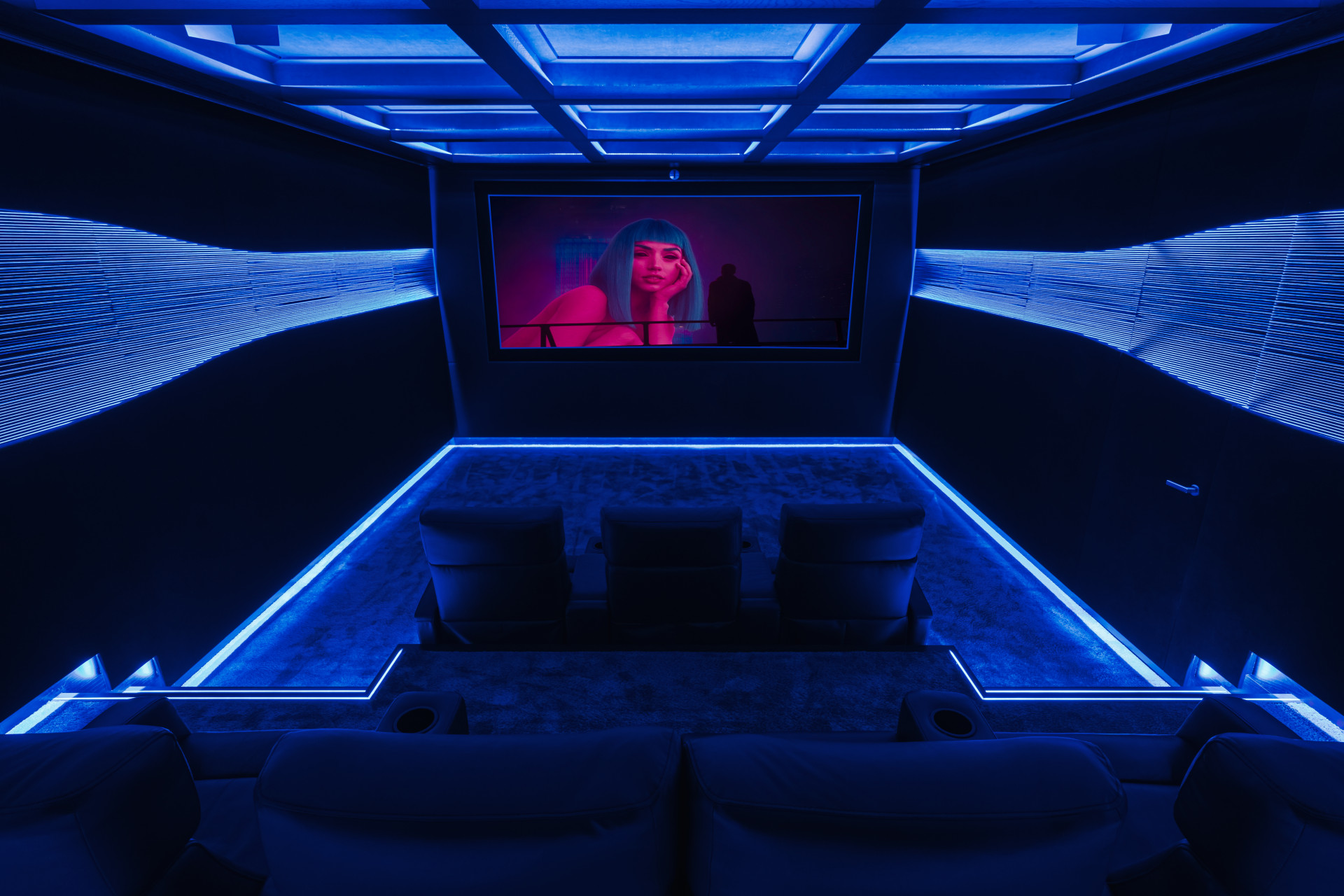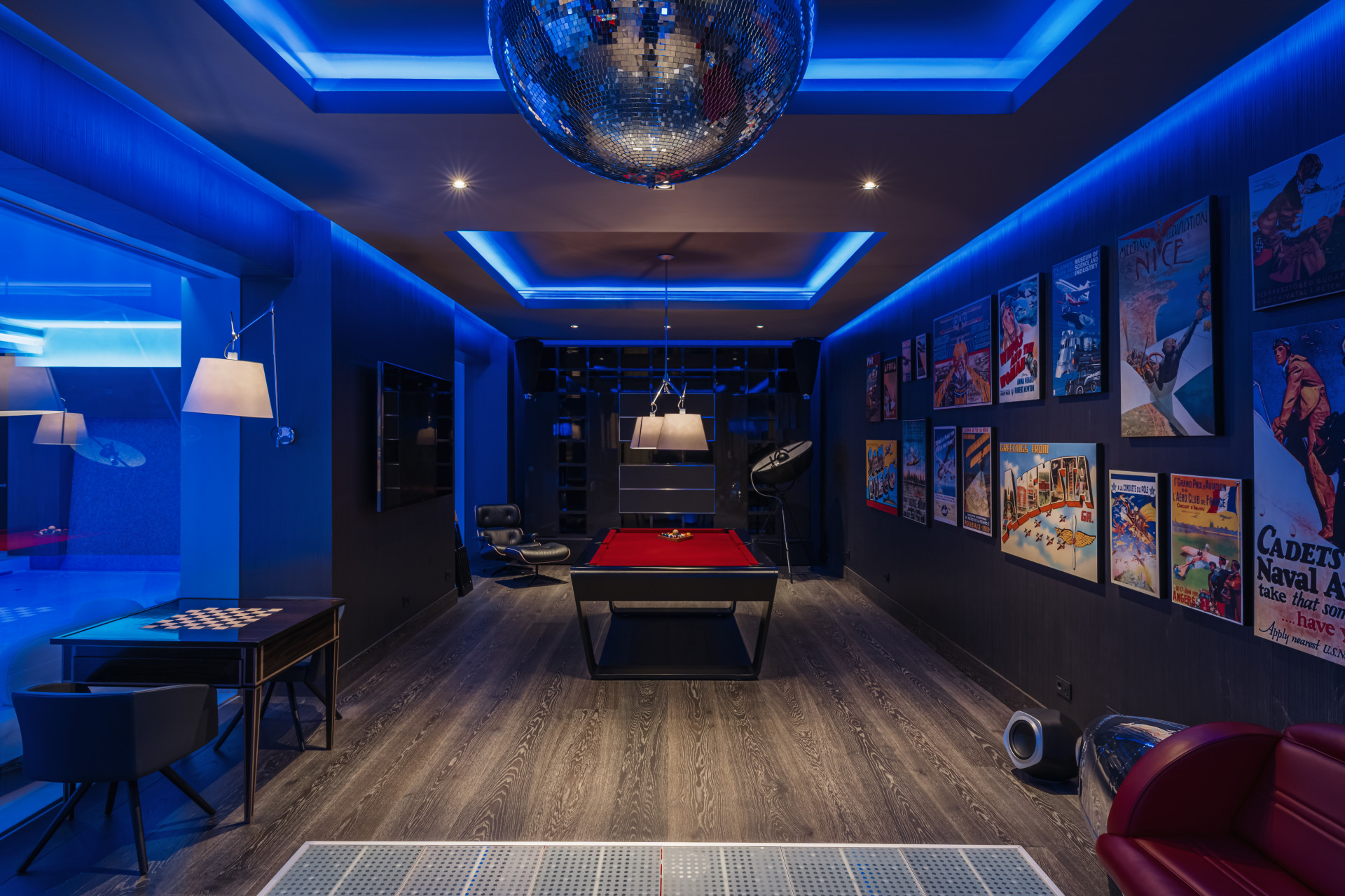 The residence is distributed across three voluminous floors, comprising seven opulent bedrooms and nine bathrooms. The expansive entrance hall, highlighted by a striking skylight and double-height ceiling, establishes an unparalleled sense of space and grandeur. The villa is fully furnished with high-end collections by Fendi and Manutti, and features technologically advanced Bang & Olufsen TV and audio throughout, while glass doors and double glazing further accentuate the property’s bright, airy atmosphere. Entertain guests in the formal dining room, wine cellar, and bar area, or relax on the sweeping private terraces offering panoramic views across mountains, sea and the verdant landscaped gardens.