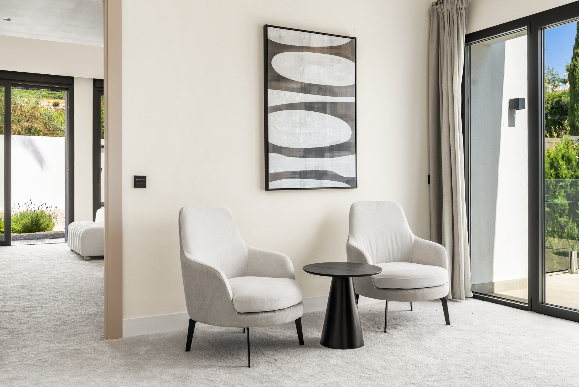The meticulously landscaped gardens frame a heated saltwater infinity pool, offering direct scenic outlooks over the golf fairways to the Mediterranean. A private garage accommodates three cars, with additional driveway parking. Its enviable location places you just minutes from the renowned Villa Padierna and Los Flamingos Golf, close to restaurants, town amenities, and only 20 minutes’ drive from Puente Romano and the beaches of the Costa del Sol. This property exemplifies the best in luxury Costa del Sol living, promising not only comfort and security, but also access to a vibrant gastronomic culture, year-round warm climate, and a focus on health and well-being.