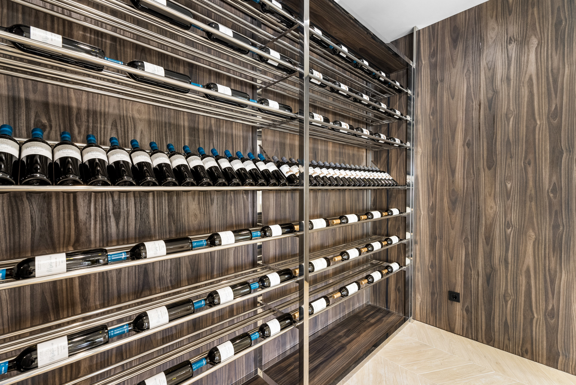 Spanning three levels and connected by a private lift, the villa extends over 920m² of built area, with 815m² dedicated to lavish interiors. Accommodation includes six spacious bedrooms and six bathrooms, five of which are en suite, plus an additional guest toilet. Each bedroom is designed with comfort and elegance in mind, offering sea, golf, mountain, or garden views, and excellent storage including a walk-in closet. A separate office room provides flexibility and can be converted to a further guest bedroom. The main level features an impressive open-plan living and dining area with a double-height ceiling, inviting abundant natural light through glass doors. The state-of-the-art kitchen is fully fitted with Gaggenau appliances and Italian carpentry, seamlessly blending traditional architecture with modern design and functionality.
